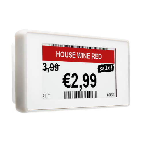 The EE-213R is a high resolution fully graphical, e-paper based display. We offer this range with a black, white and complementary red display to attract more attention of the customers. Thanks to the high contrast of the display it is even possible to read barcodes off the display using an barcode scanner. Since the display only consumes power during radio transmission and display updates, we can guarantee a battery life time up to 5 years at room temperature with 2 updates per day.